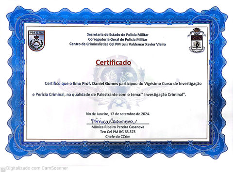 084 - Certificado Comissário Daniel Gomes - Cursos ministrados no Sinpol-PE