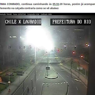 Dia 01/12/2013, manhã de domingo, um jovem caminha às 05 horas, 31 minutos e 10 segundos pela conhecida avenida Chile, ao lado da igreja catedral metropolitana, centro da cidade do Rio de Janeiro. Desapercebidamente ele manipula seu telefone celular “ iphone ” , não se apercebendo de que um homem mau já o espreita entre os pequenos raios de sol que brotam naquela madrugada. A vítima caminha em direção ao conhecido largo da carioca, onde pretende pegar um ônibus para sua residência que se localiza no bairro de realengo, concomitantemente o criminoso se desloca acompanhando aquele jovem até que no horário exato de 05 horas, 32 minutos e 37 segundos, ou seja, 1 minuto e 27 segundos depois aquele criminoso frio e covarde ataca a sua presa e num lance rápido subtrai o seu telefone celular iphone com uma mão e com a outra desfere um certeiro golpe com uma faca de cozinha no peito da vítima que num lance de defesa tentava reaver o seu aparelho. Imediatamente o criminoso foge em desabalada carreira e em sentido contrario o jovem Conrado, já ferido, caminha cambaleante alguns passos para trás e cai no meio daquela avenida já morto. Na equipe da Divisão de Homicídios, no INQ. 1503/2013, rumamos para o local onde diante daquela tragédia, conseguíamos a declaração de uma testemunha, morador de rua, que nominava um suspeito para o crime e em seguimento iniciávamos as primeiras investigações verificado os prédios daquela artéria que dispunham de câmeras de monitoramento, sendo que nas primeiras imagens coletadas, conforme figuras abaixo, ficava demonstrada toda a ação desde o seu inicio até o ataque final com a conseqüente fuga do criminoso rumo ao pátio da igreja Catedral metropolitana do Rio de janeiro. Através das imagens confirmávamos a participação do suspeito que já havia praticado outros crimes, inclusive, em um deles fora preso em flagrante delito, no mesmo local, no dia 27/10/2012, por roubar um homem, usando uma faca como arma, sendo condenado a 05 anos e 04 meses de prisão, porém surpreendentemente, 06 meses depois gozava de um benefício de ficar em liberdade usando uma tornozeleira de monitoramento, fato que jamais evitaria o ato praticado. Numa medida cautelar a sua prisão era decretada e também na madrugada de domingo, dia 29/12/2013, ele era preso pelas forças policiais quando perambulava pelas ruas do centro do Rio de Janeiro, ou seja 28 dias após cometer o violento crime. Diante das evidências colhidas, o criminoso que é usuário de “crack” e tuberculoso , admitia o ato praticado e confrontado pelo pai do jovem vitimado, não conseguia explicar o mau causado com a sua ação que deixou uma família órfão de seu filho no afã da juventude. O réu no momento se encontra à disposição da Justiça Terrena por infração ao art. 157 parágrafo 3º do CP, com pena cominada de 20 à 30 anos de reclusão, no processo criminal nº0415600-37.2013.8.19.0001. Tendo sido condenado pela 42ª Vara Criminal da capital, à penas de 20 (Vinte) anos de reclusão e 10 (dez) dias multa, em regime inicial fechado.
